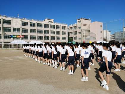 本日、体育大会の予行練習を行いました。主に、当日の流れや、周りと呼吸を合わせる行進の確認等を行いました。係の生徒も、1人1人が責任を持って自分の役割を確認していました。