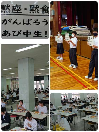 合言葉は『黙座(もくざ)・黙食(もくしょく) がんばろう あび中生!』です。