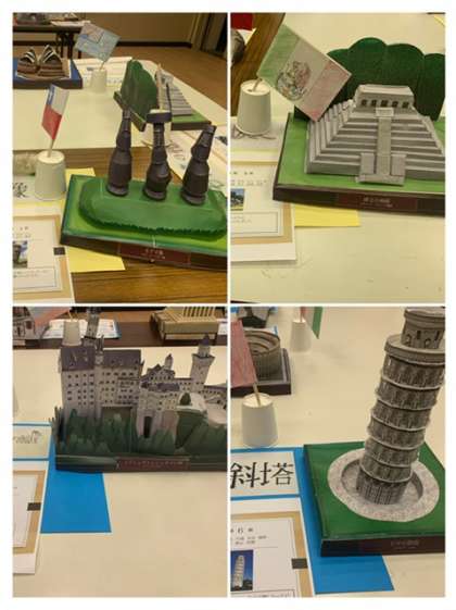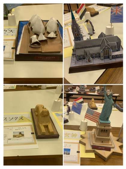 制作するにあたり、細かい作業がたくさんありました。失敗することもありましたが、班を出こえて助け合いました。限られた時間の中で、建物を制作しながら、その国の歴史や背景を学ぶこともできました。
