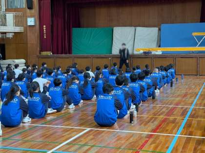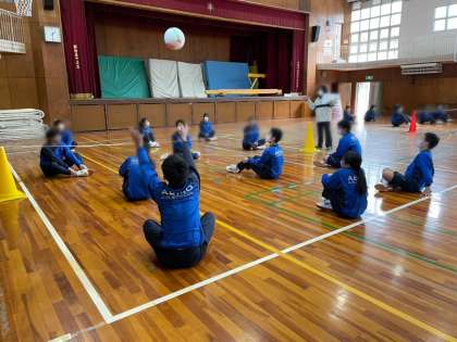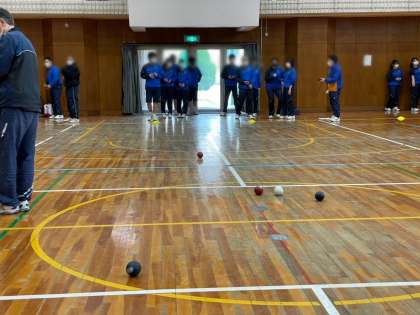 21日、特別支援の取り組みで、シッテイングバレーとボッチャの体験をしました。ナイスプレーが出ると歓声があがってました。