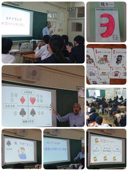 キャリア教育の一環で、講師に、ヒューマンアカデミー大阪校の川島 浩さんをお招きして、SPトランプを使って、自己理解を深める取り組みをしました。