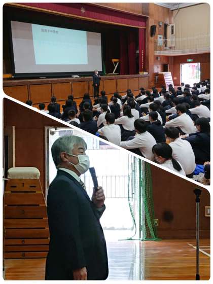 中本校長先生より、コロナ禍の社会情勢の中で中学校生活をいかに充実したものにするかというお話がありました。みんな真剣な顔つきで聴いていました。
