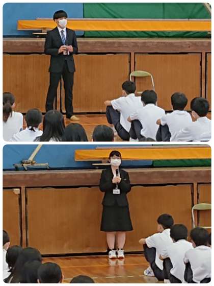 川崎先生からは、2年生の様子を見ていると、お互いが理解しあえている、人の意見を否定せずに受け止めている。やはり人との出会いはいいなと思います。みんなの明るさに影響されて教育実習をがんばりたいというお話でした。