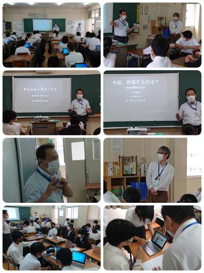 我孫子中学校に来られているICT教育アシスタントの方を学級にお招きして、プレゼンテーションソフトについて講義してもらい、来週から始まる本格的なまとめ学習に備えました。