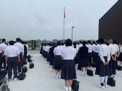 すぐにセレモニーを行い、黙祷の後、平和宣言文を読みました。その後、各クラスに分かれて戦争の遺跡を見学しました。