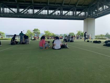 待っている間は屋根のついた夢広場でおやつを食べたり、ゆっくりした時間を過ごしました。