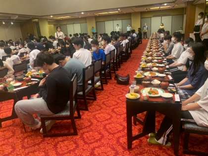 すぐに夕食を食べ、楽しそうに大浴場へ向かっています。