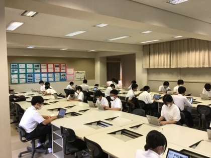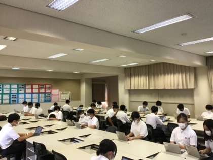 ICTルームにて、1人一台学習者端末(PC)を使って活動しています。主な活動内容は、