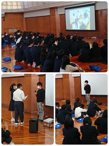 学年主任の竹中先生から、3月に行われる合唱コンクールの説明がありました。各クラスとも合唱曲を年内に決める予定です。