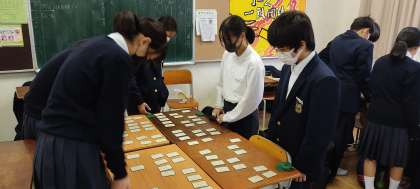 土曜授業の2時間目は各クラスで百人一首の練習を行いました。
