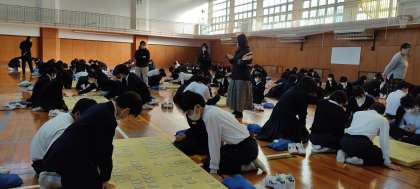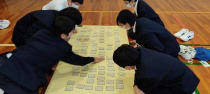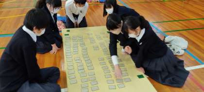 本日6時間目に体育館で百人一首の練習を学年全体で行いました。