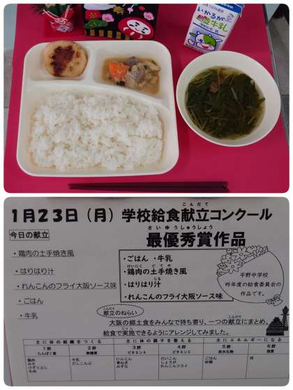 今日の献立は令和3年度学校給食コンクール最優秀賞に選ばれた献立です。