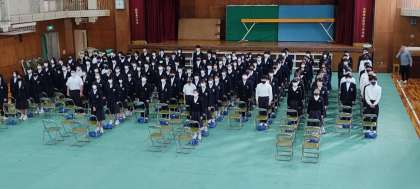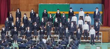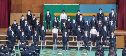 学年集会から引き続き、合唱コンクールの練習を行いました。1時間目は段への上り方降り方と課題曲の「負けないこと」と校歌を、中心に練習しました。