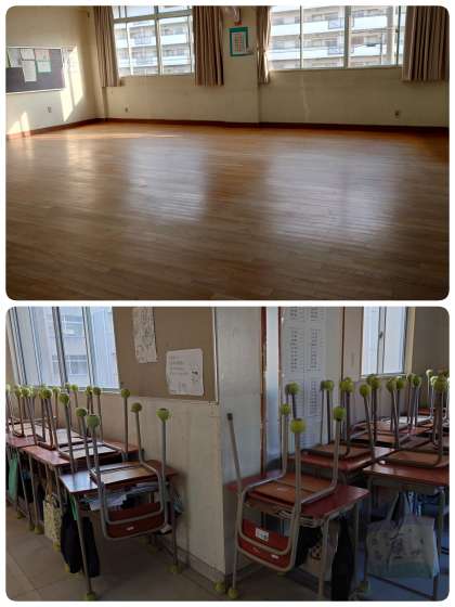 各学年とも、教室の環境整備としてワックスがけを行いました。