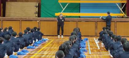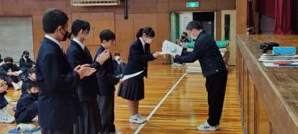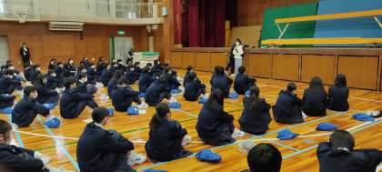 3時間目の修了式に先立って一年を振り返る学年集会を行いました。