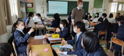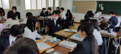 4/18 2時間目c-netのジョシュア先生との授業ではmust「〜しなければならない」を使ってグループ活動を行いました。