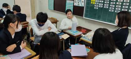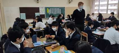 4/19 2時間目c-netのジョシュア先生との授業ではmust「〜しなければならない」を使ってグループ活動を行いました。
