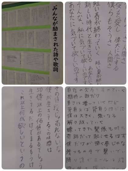 が掲示されています。仲間の思いを知ること。その思いの意味を深く考えること。それは、自分の感性を磨くことにつながります。必見の価値ありです。