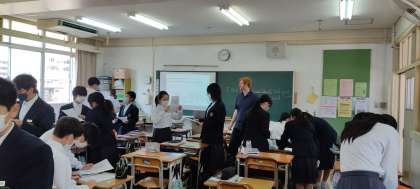 5/16 1時間目c-netのジョシュア先生との授業ではI think that「〜と思います」を使ってペア活動を行いました。