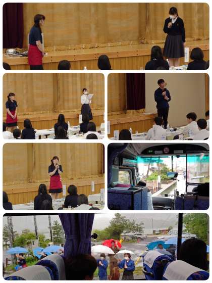 雨が降りしきる中、倉敷の天候状況を配慮してしおりの予定より45分遅れて9時に出発しました。