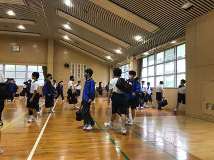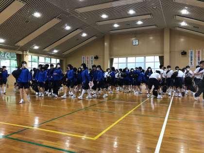 まず、整列して、荷物をクラスごとにまとめます。指示された場所に素早く置きましょう。
