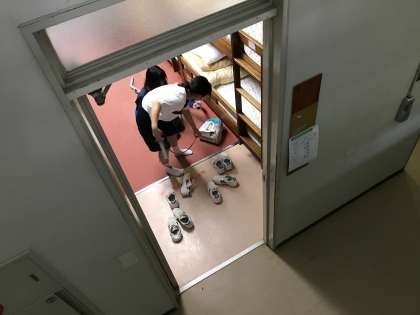 雨は止みましたが、足もとが悪いので「朝のつどい」が中止になりました。先に掃除を始めています。