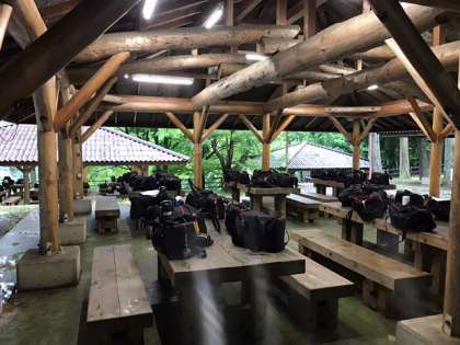 いよいよ、野外炊事が始まります。まずは全員集まって説明です。