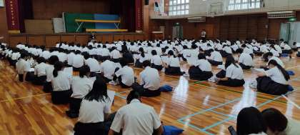 9/7 6限目、体育館で文化発表会の群読と学年合唱の練習をしました。