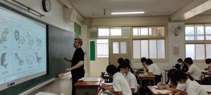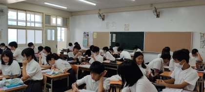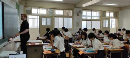 9/12 1限目2-3はジョシュア先生と一緒に発音の紛らわしい単語の聞き分けと、比較級を使ったゲームをしました。