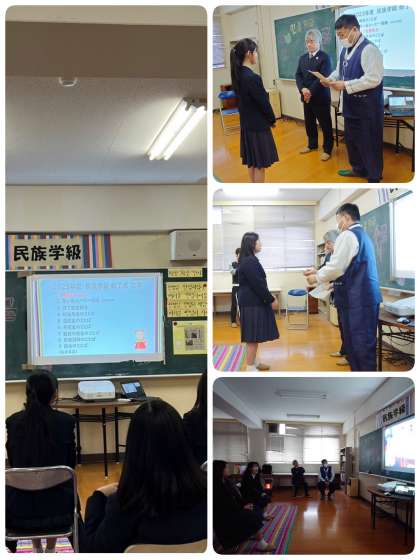 3年生の卒業式に先立って、民族学級の修了式が行われました。
