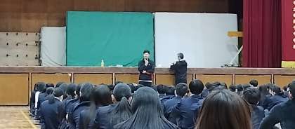 さらに国語とフィールドワークの表彰のあと、今年度末で異動が分かっている先生からあいさつがありました。