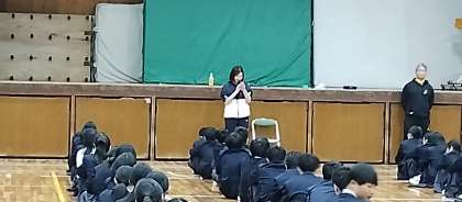 3/21 5限目、体育館で今年度最後の学年集会を行いました。