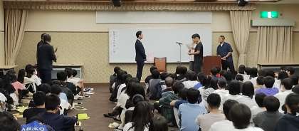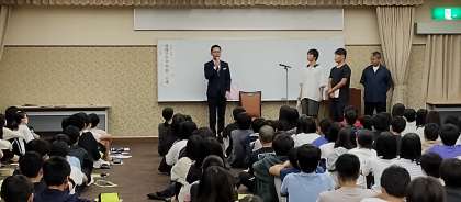 ホテルへの到着が遅れたので、先に夕食とお風呂を済ませて、今から入館式を行います。