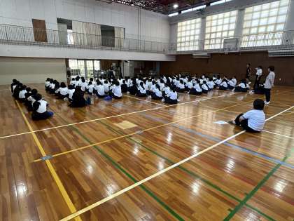 6限、1年生全員が集まり、担当の先生から取り組み内容について説明を受けました。