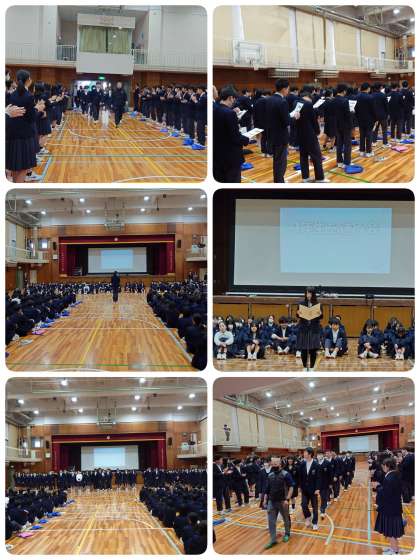 卒業していく3年生の門出を在校生全員でお祝いしました。お互いに歌と言葉を送り、我孫子中のバトンを確かに後輩にたくすことができました。今後の我孫子中の益々の発展が期待されます。3年生のみなさん、お疲れ様でした。