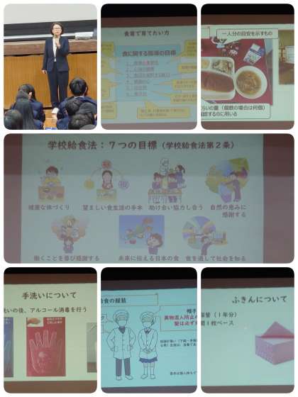 栄養教諭の増田先生から給食の意義と注意点のお話がありました。