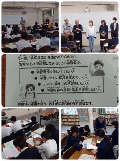 本日、元気アップの主催で、1学期中間テストに向けて自主学習会を行いました。はじめに学習会のあり方の確認をしたあと、参加生徒たちは、とても前向きに取り組んでいました。