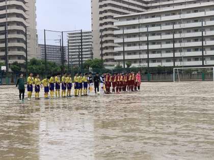 本日行われました、大阪市地区サッカー大会1回戦は我孫子vs城東との対戦。大雨の中、何とか2ー1で勝利しました。