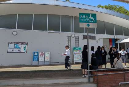 修学旅行一行は予定通り、長良川サービスエリアでトイレ休憩を取っています。