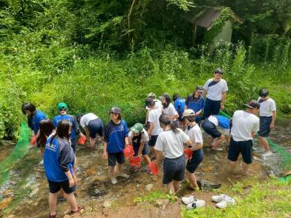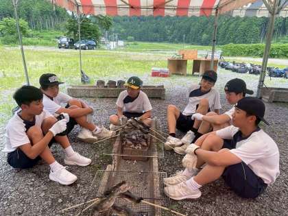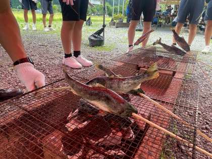 つかみ取りで捕まえたり、釣ったりした魚を焼いて食べます。。