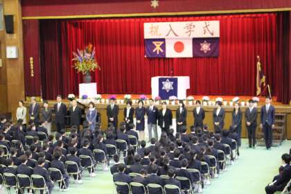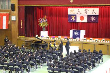 花束贈呈と一年生の学年所属の先生方の紹介、学校全体でかかわる先生方の紹介がありました。