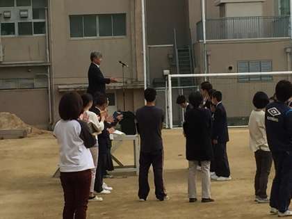 全校集会がありました。校長先生のお話と、保健室より検尿について連絡がありました。