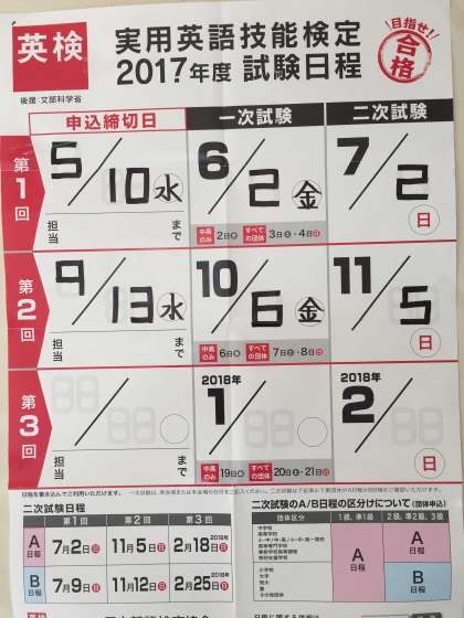受検を希望する人は、各学年の英語科の先生まで申し出てください。
