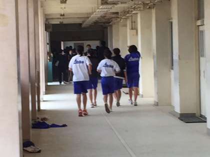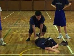 男子バスケットボール部では市原先生直伝のストレッチ講座が開かれていました。