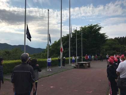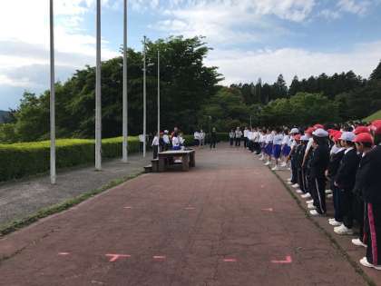 国歌に合わせて校旗降納、生徒代表挨拶、職員からの諸注意がありました。