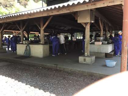 9時から野外炊事の説明があり、10時からカレーライス作りが始まりました。