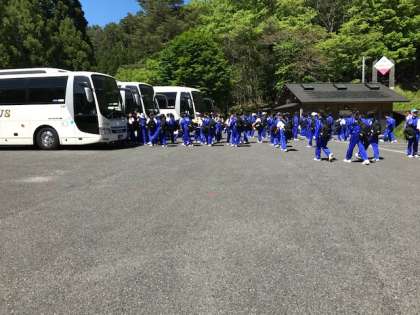 野外炊事を終え、これからバス乗車、学校へ向かいます。