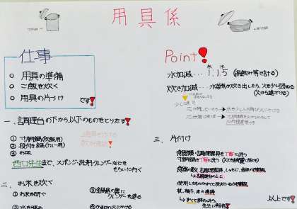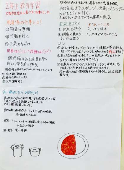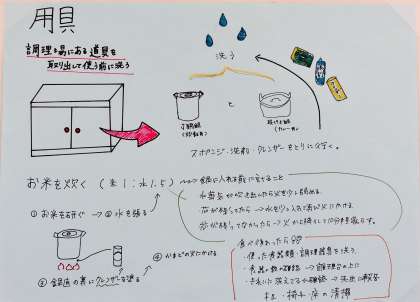 用具係は、鍋や調理器具、お皿などの準備・片づけと、炊飯を行います。焦げないように!
