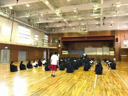 5月と6月の学年目標を、代議員が手作り紙芝居でユーモアたっぷりに発表しました。