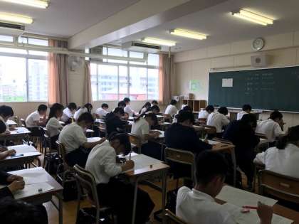 1年生にとっては初めての定期テスト、1学期中間テストが今日から2日間あります。写真は2時間目、国語のテストの様子です。